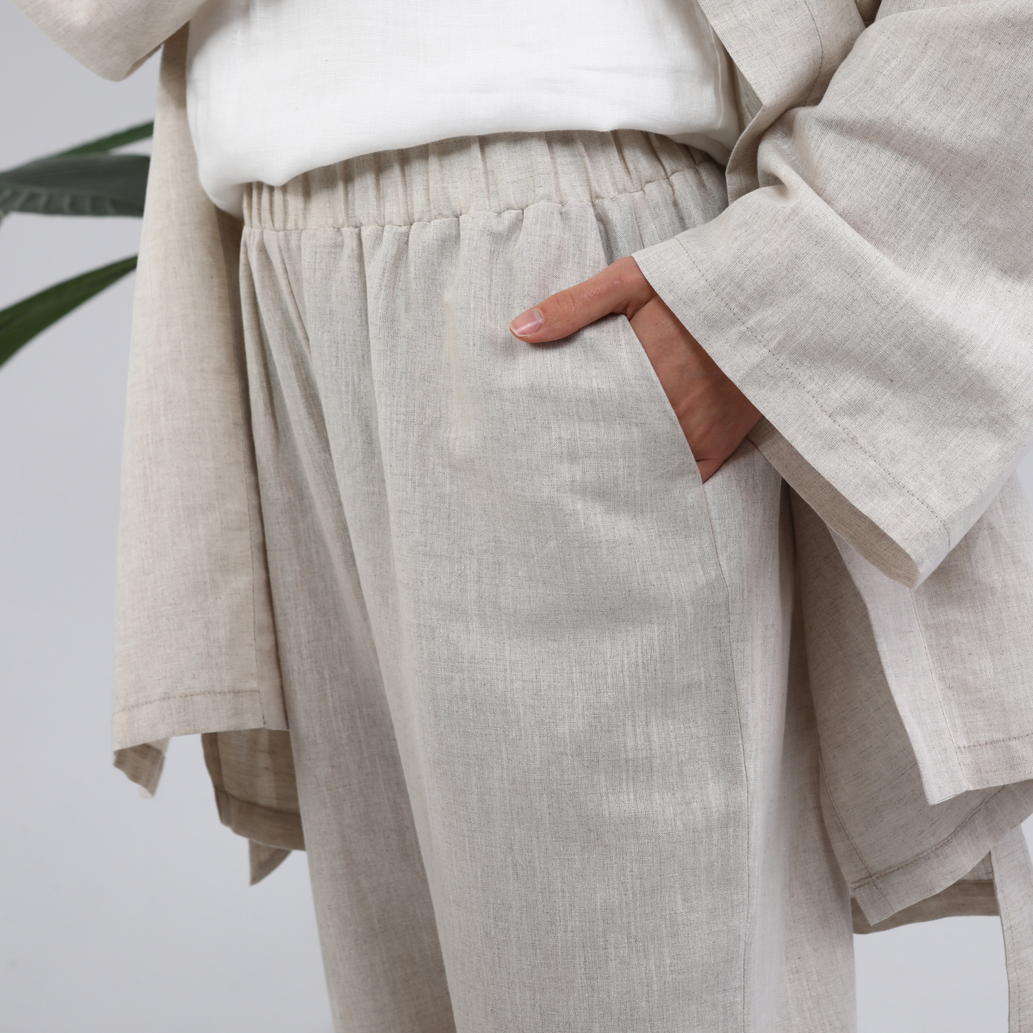 %100 Kenevir iplik kumaşı bitkilerle renklendirildi.